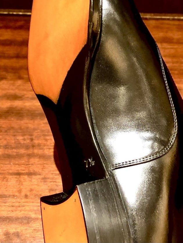 フィドルバックソール。ビスポークにみられる贅沢な仕様。土踏まず部分がバイオリンを彷彿させる官能的なラインです。