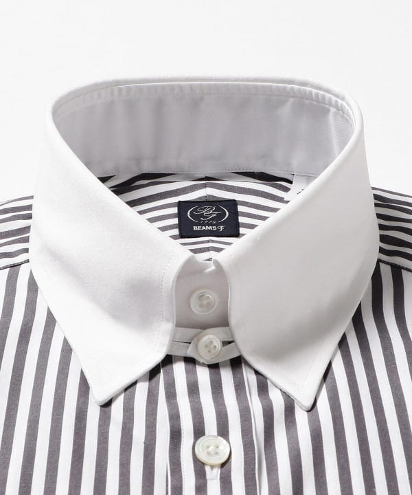 BEAMS F / ロンドンストライプ クレリック タブカラーシャツ