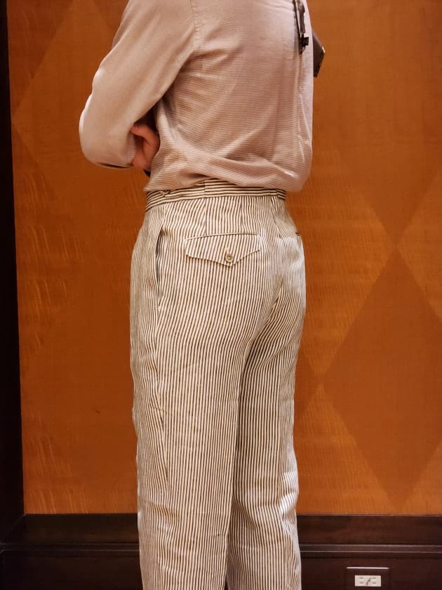 と、目前にあるストライプのパンツを置いて彼が話していました。