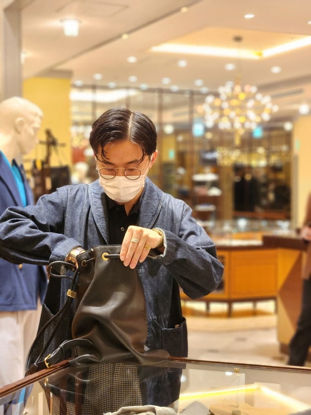 清水の物欲が高まりつつあり、鞄を物色している後ろ。気になりました。