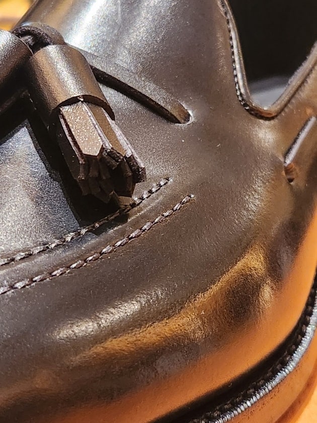 そのレザーは密で型崩れがにしにくく、繊細なキメ細かさ、そして上品な艶があります。
