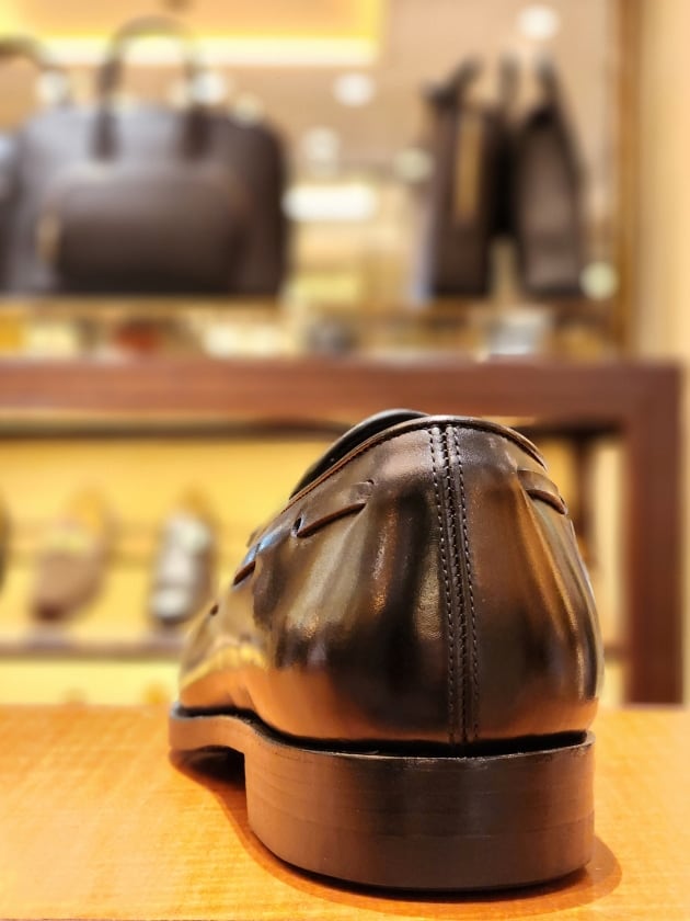 ヒール。アッパーのレザーはフランスの老舗タンナーを採用。