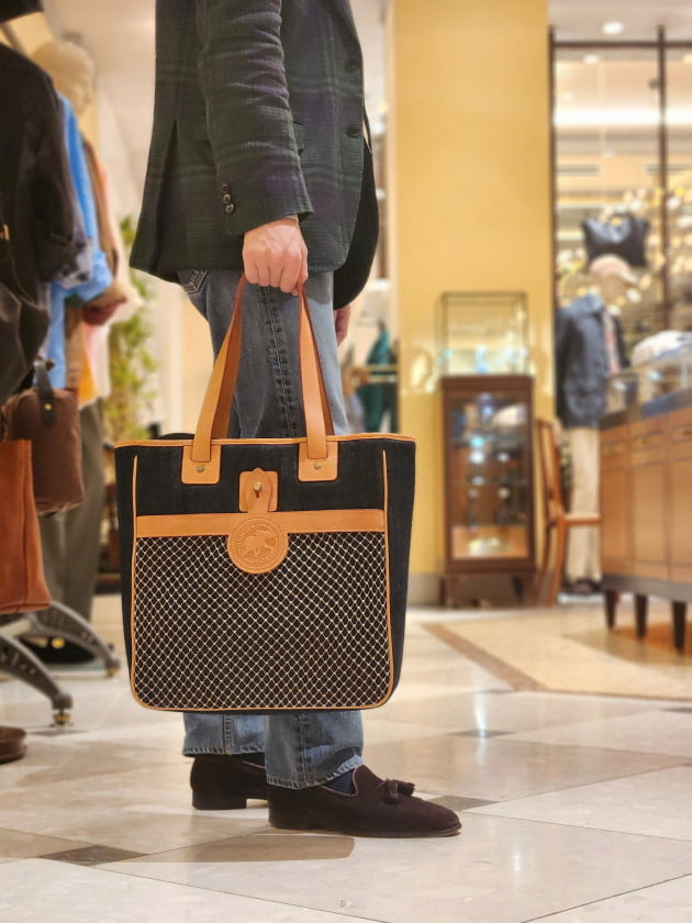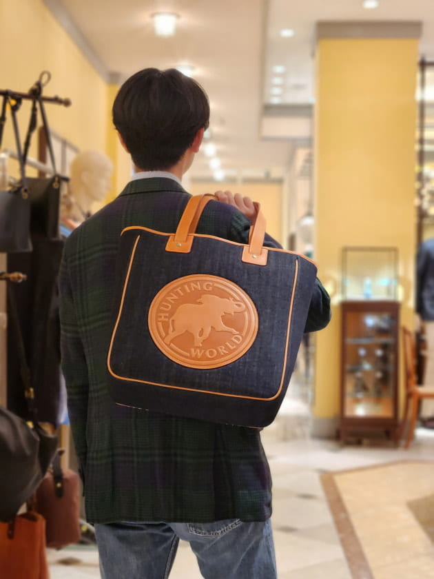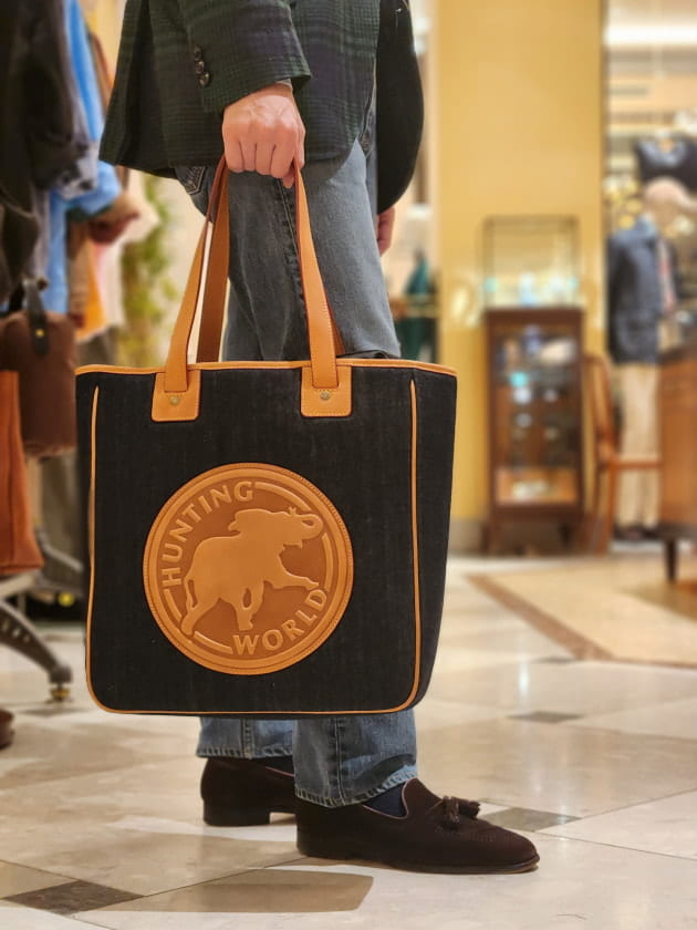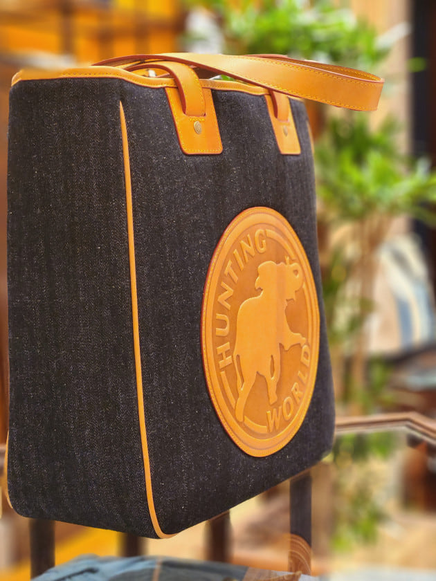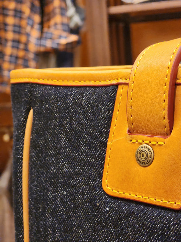 アメリカ発のHUNTING WORLD。レザーとナイロンのコンビで有名ですが、ナイロン部分を岡山県産のデニムに変更。