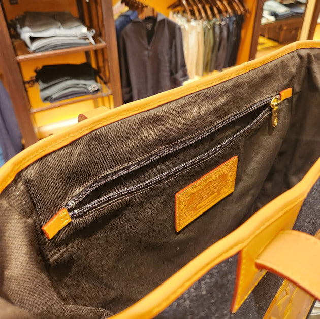 金具は真鍮で、手打ちでブランド名を彫刻している手間のかかっている仕上げ。