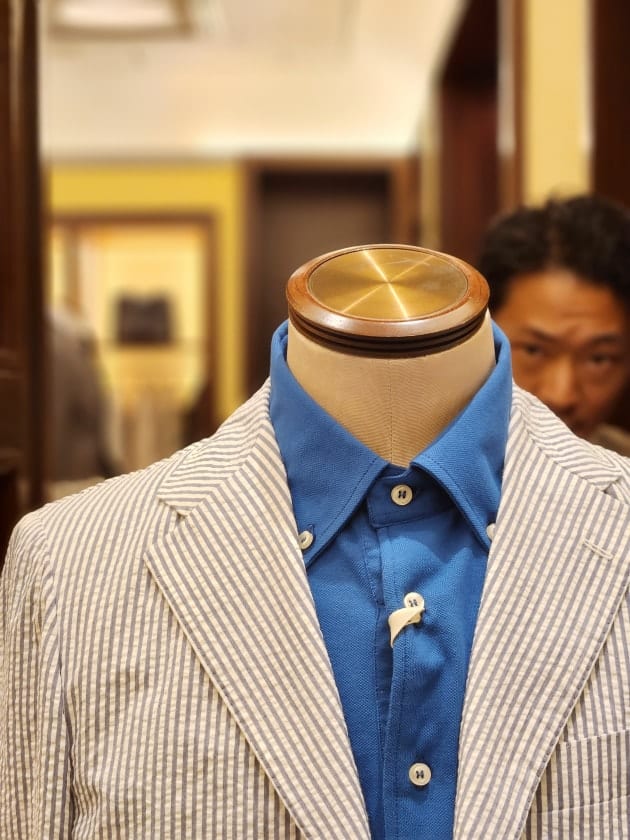弊社で修正をくわえて、ジャケットのインナーに着用するといい感じの襟に。