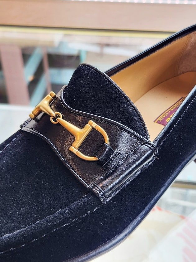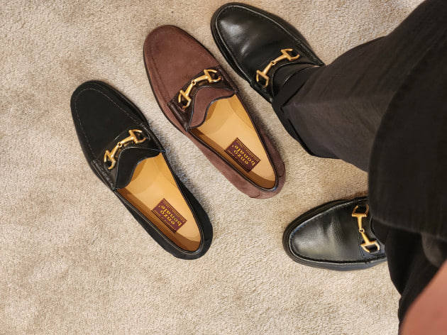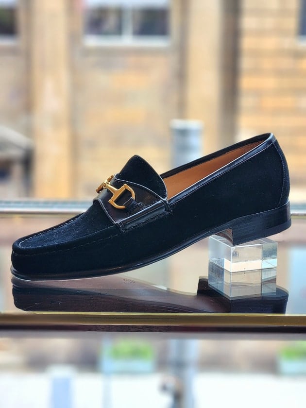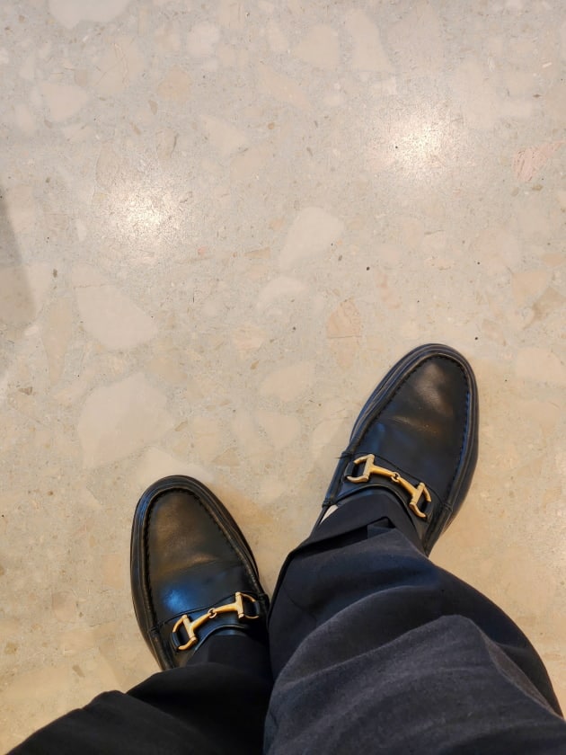 ブラックのビットローファー。ブラウンも持っていますが、自宅のシューズクローゼットで眠っています。