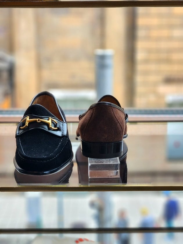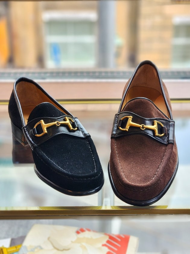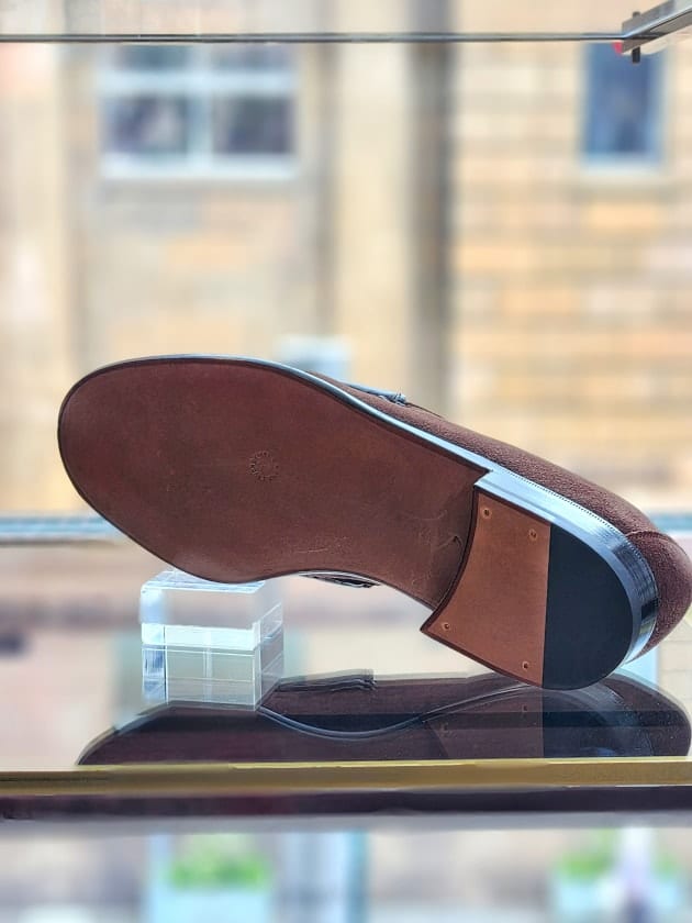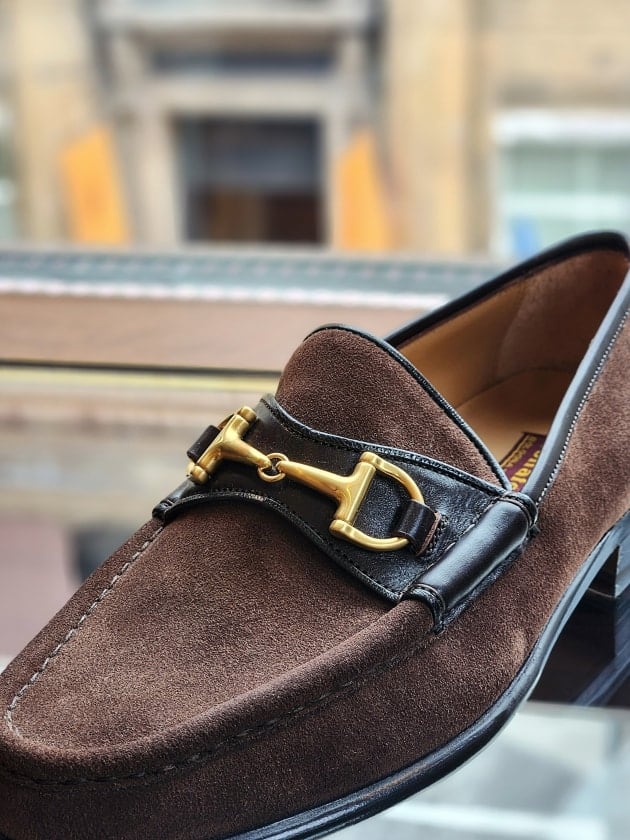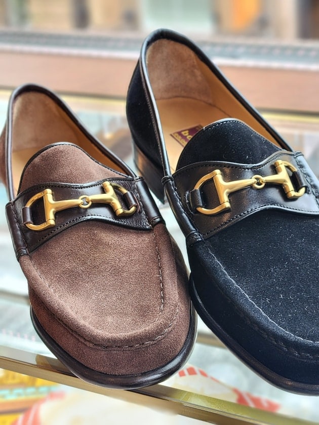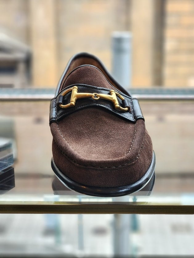 アッパーがスエード、サドルがカーフのコンビ仕様。