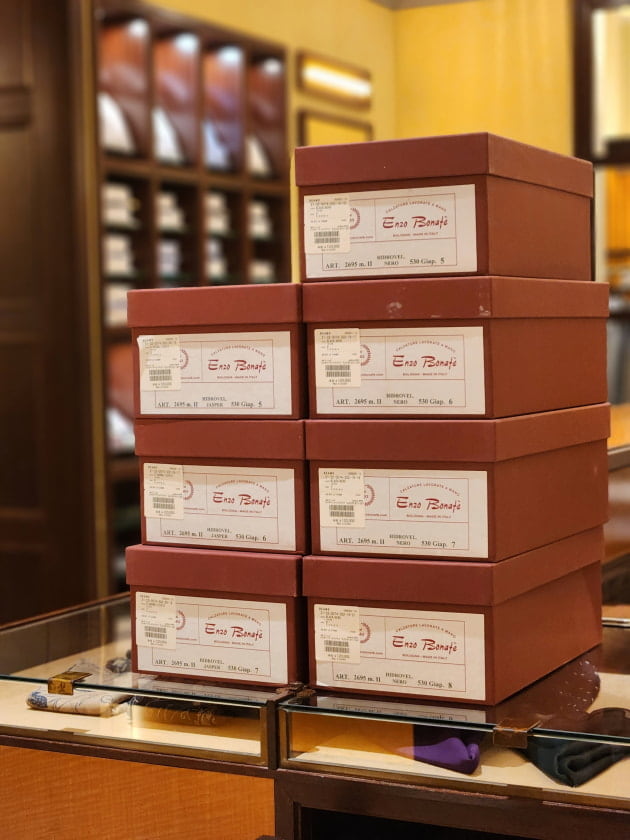 Enzo Bonafe特有のヒールカップは上に向かって美しいくびれをみせてくれます。