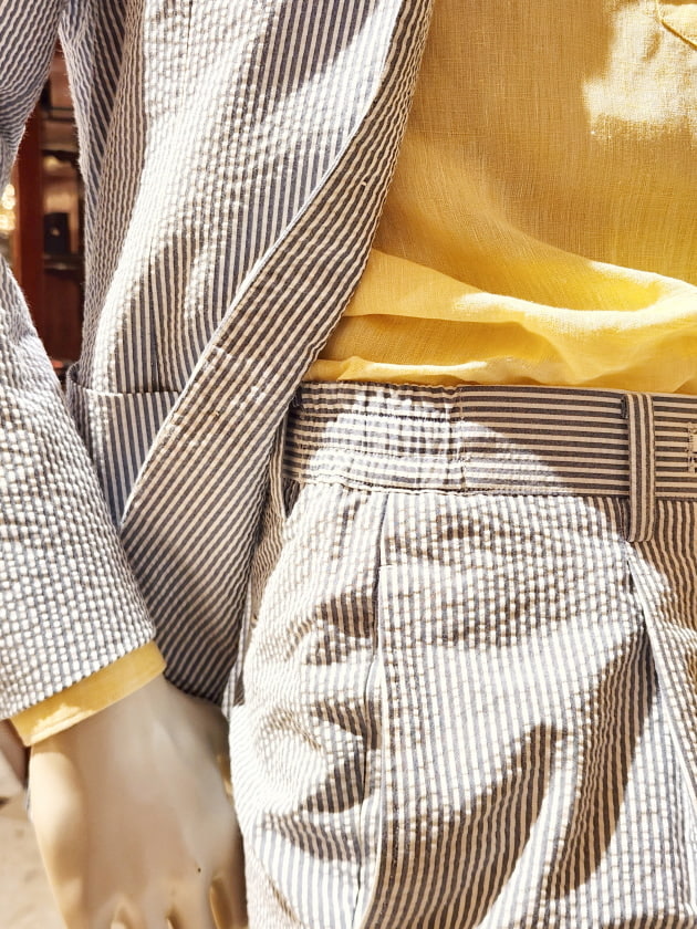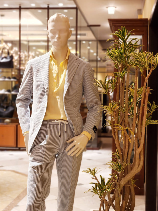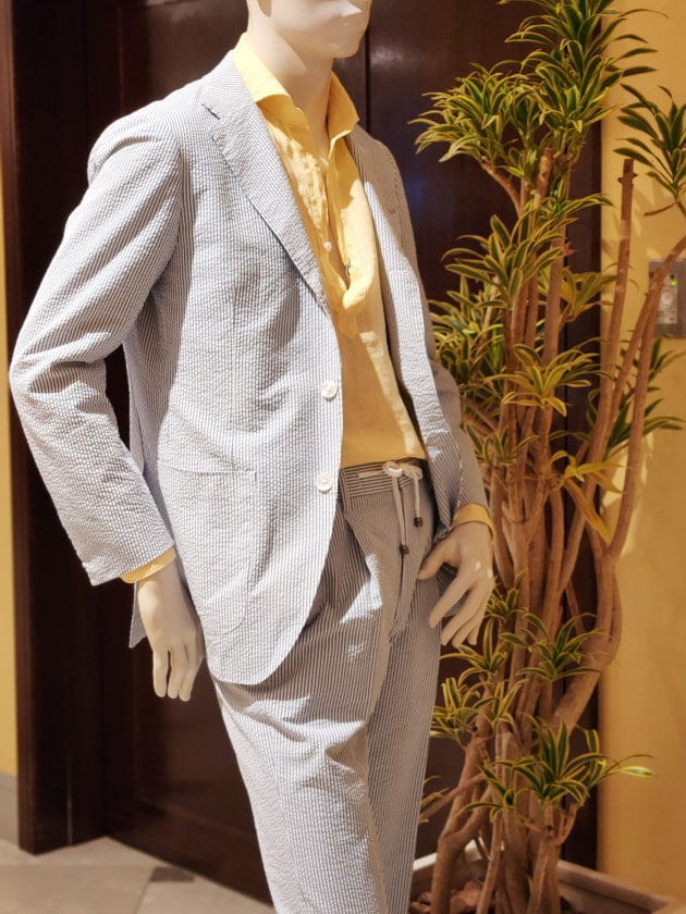 夏に澄ませるスーツをお探しの場合はこのシアサッカーがおすすめ。