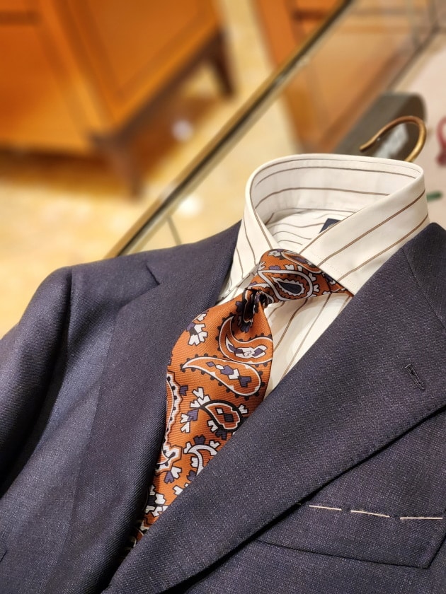 柄の間隔が開いているネクタイなどにも相性抜群。