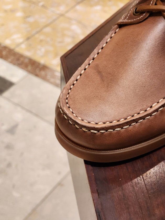 レザーはCHROMEXCEL®️(クロムエクセル)レザー。油分が非常に多く、耐久性に優れた表情豊かなレザー。ラグビーボールを思い浮かべるとわかりやすかと。