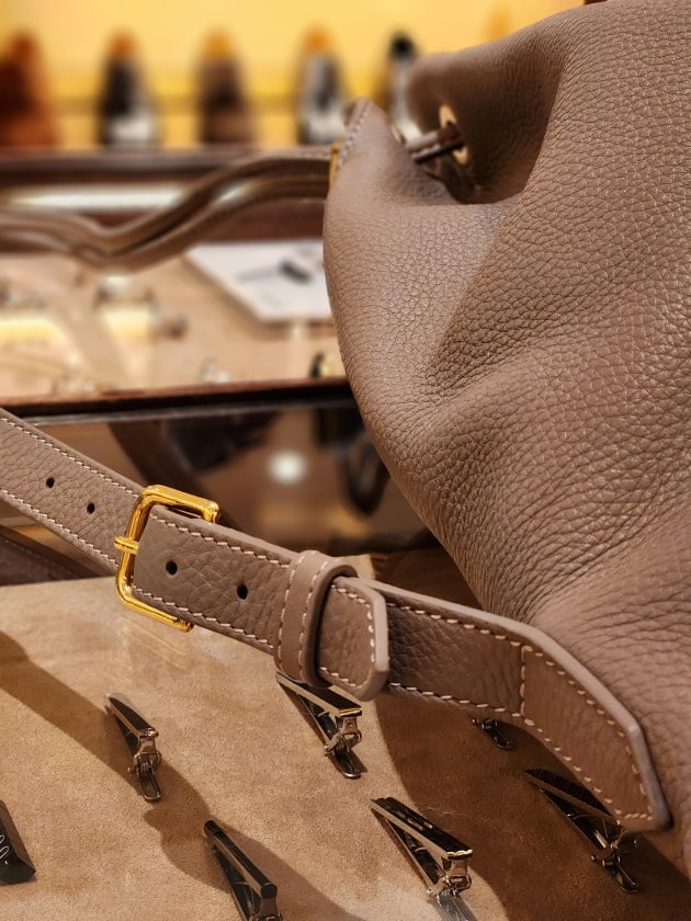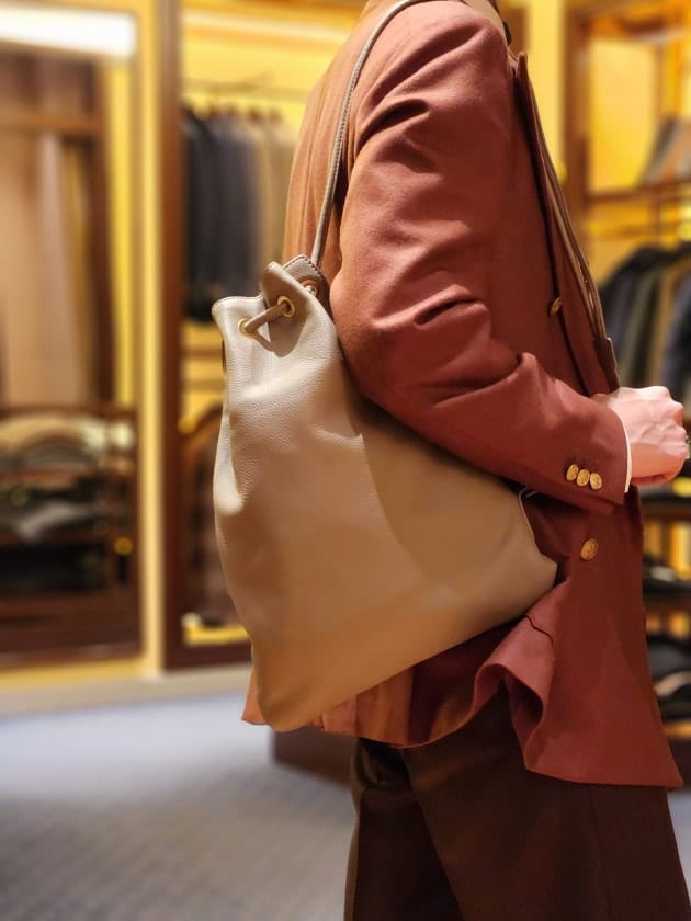 持ち手には長さ調節可能なバックル付き。nerosawaが持つのであれば調節しません。飾りだと思いながら持ちます。