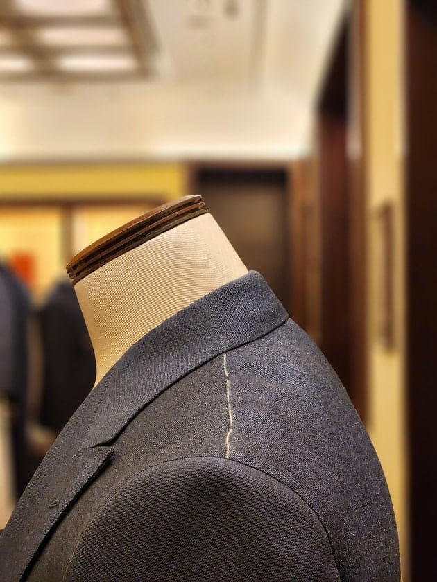 春夏仕様なので半裏仕立て。背抜きです。
