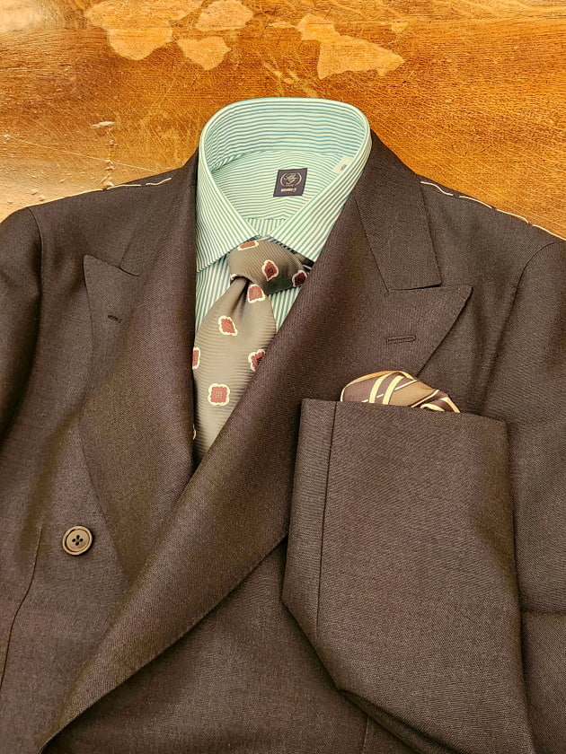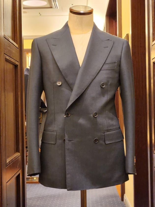 申し遅れました。ネイビーのダブルブレストスーツのご紹介です。
