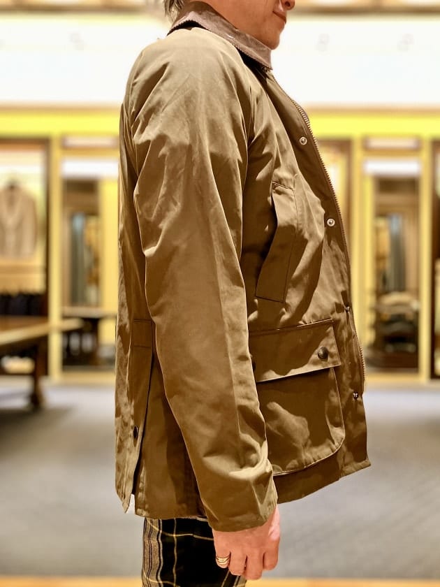 【BARBOUR】の『BEDALE』クラシックフィット。私身長170㎝体重63kgでジャケット上に羽織ってサイズ36を着用しております。