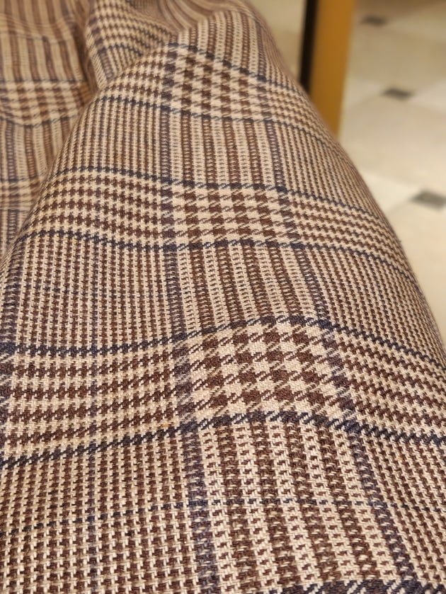文字通り、弊社がチョイスしたイタリアの生地ですが、DI PRAY社の生地。シルク90%含有の贅沢生地。そのため、寄ると光沢があるのですが、nerosawa's smartphoneでは限界がありました。