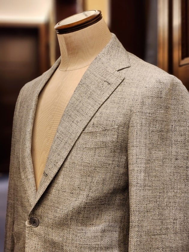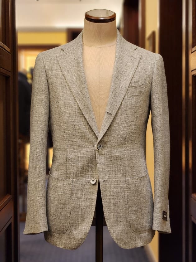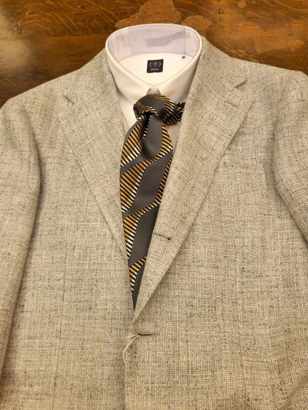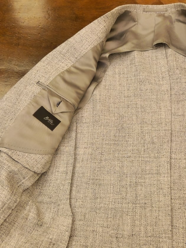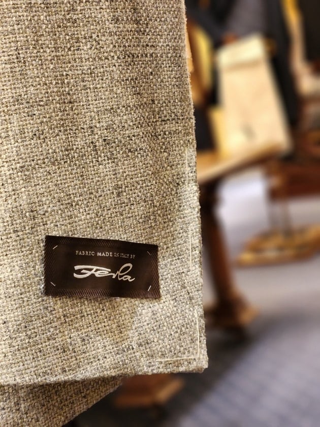 FERLAを使用した生地。 シルク36%、リネン36%、コットン16%、ナイロン12%。いわゆる4者混。