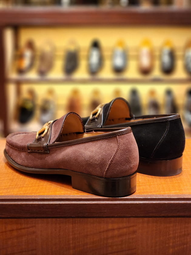 スエードベースにサドルをスムースレザーにしたコンビネーション。
