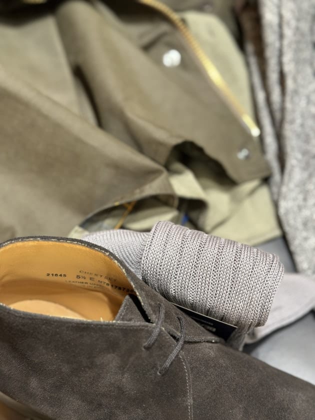 秋冬らしいスタイリングなので、ソックスも厚みのあるリブソックス。