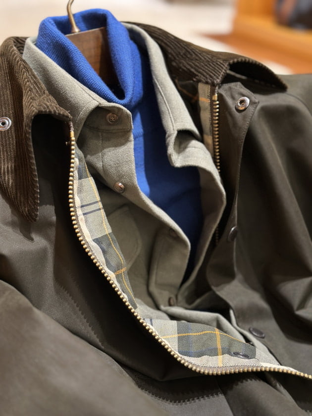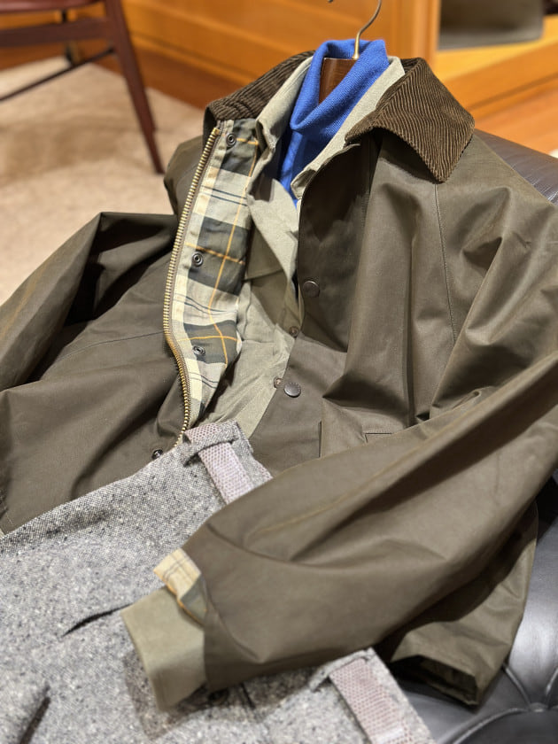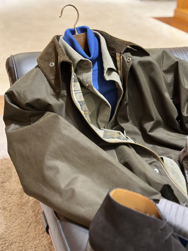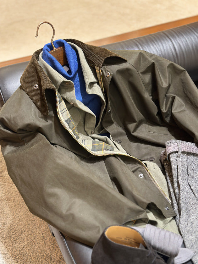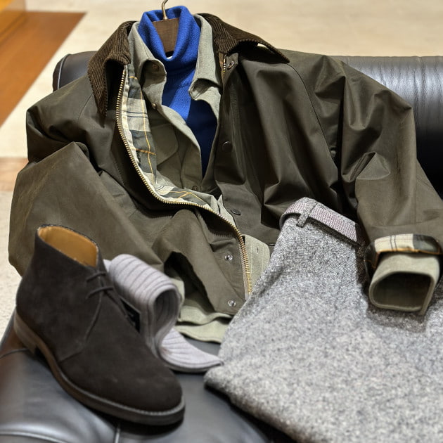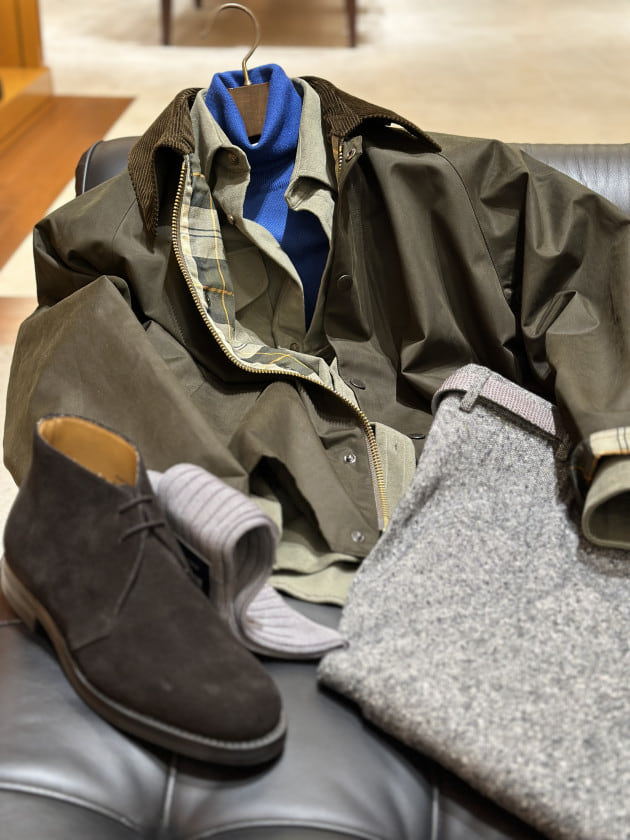 英国御用達バブアーを軸にレイヤードを駆使したスタイリング。