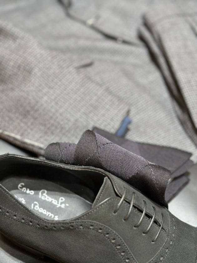 スコットランドの名門生地ブランド、“カイノック”。いい意味で少しぼんやりとした表情がまた英国色を高めています。