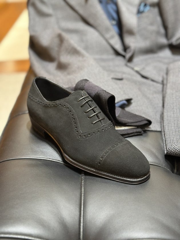 ローファーやブーツといった合わせが多かったですがレトロポロというディティールゆえに、バックスキンのレースアップで重きを!
