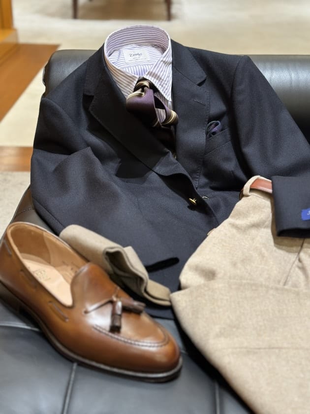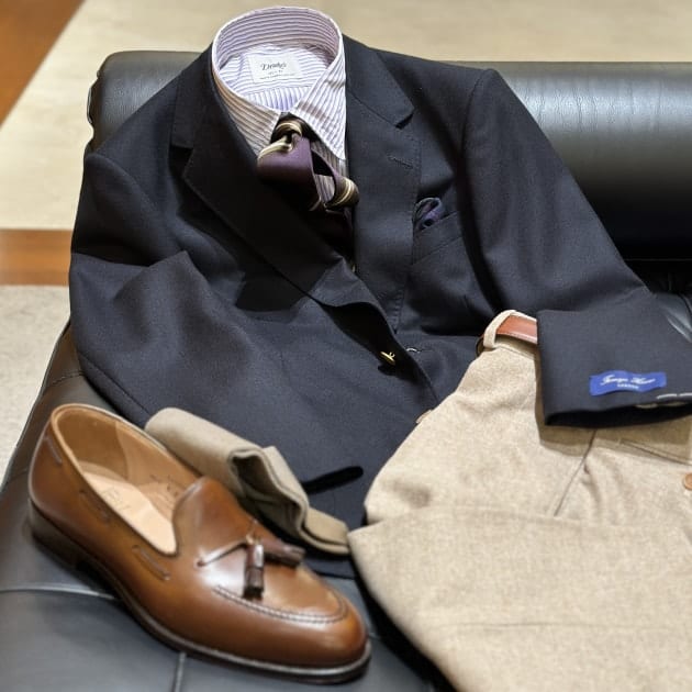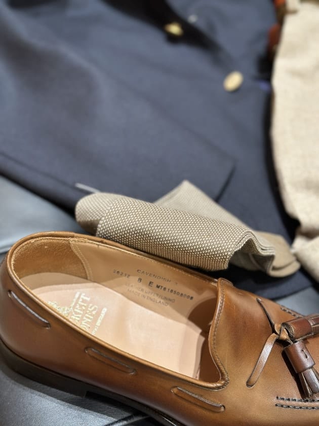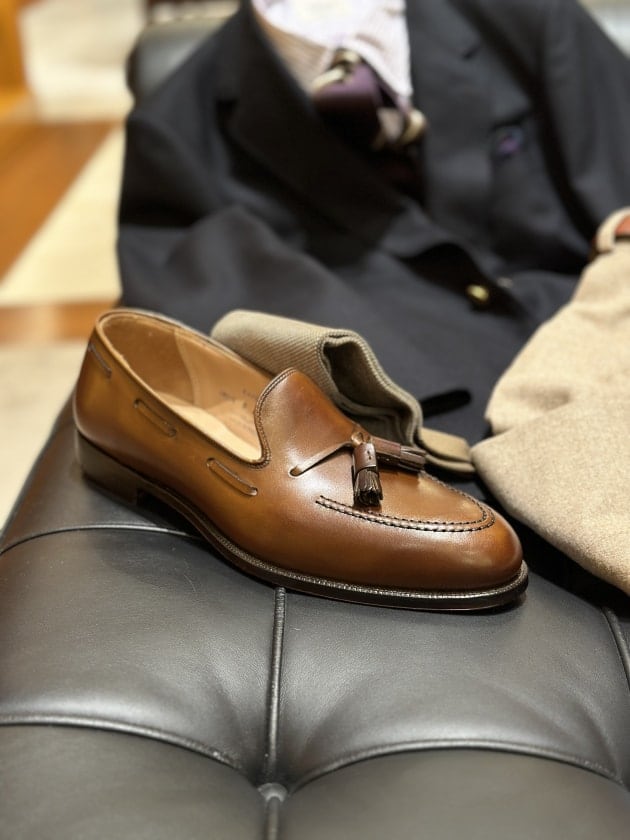 足元は高貴でトラディショナルなタッセルローファーが相性がいいかと。ムード感を引き立たせます。