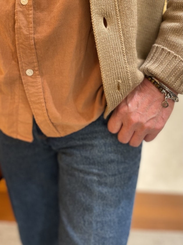 ブルージーンズはフランス最古のデニムブランドの〈Atelier TUFFERY(アトリエタフェリー)〉。シルエットもですが、他のアイテムのカラーとの相性もイイですね。