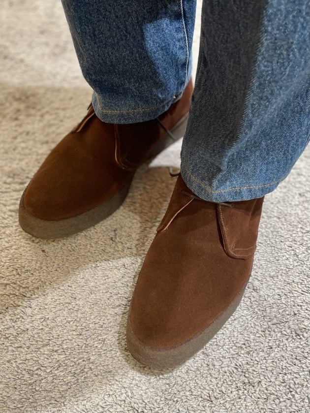足元は今シーズン人気の〈SANDERS(サンダース)〉のスエードチャッカブーツ。ミヤッチ様もしっかりおさえるところはおさえられていますよ!