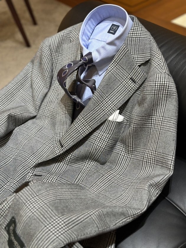 キングオブウェールズと称されるグレンプレイドスーツ。クラシカルなブイゾーンで王道なスーチングをしたいですね。