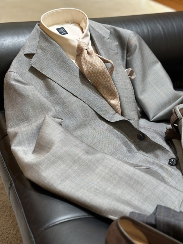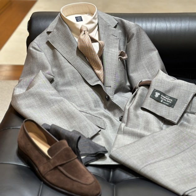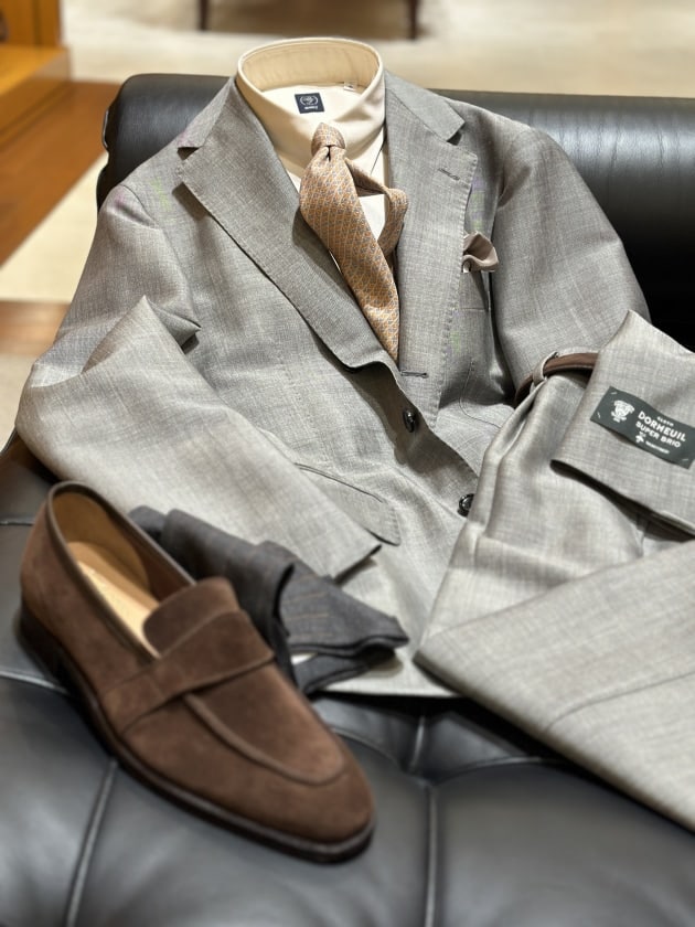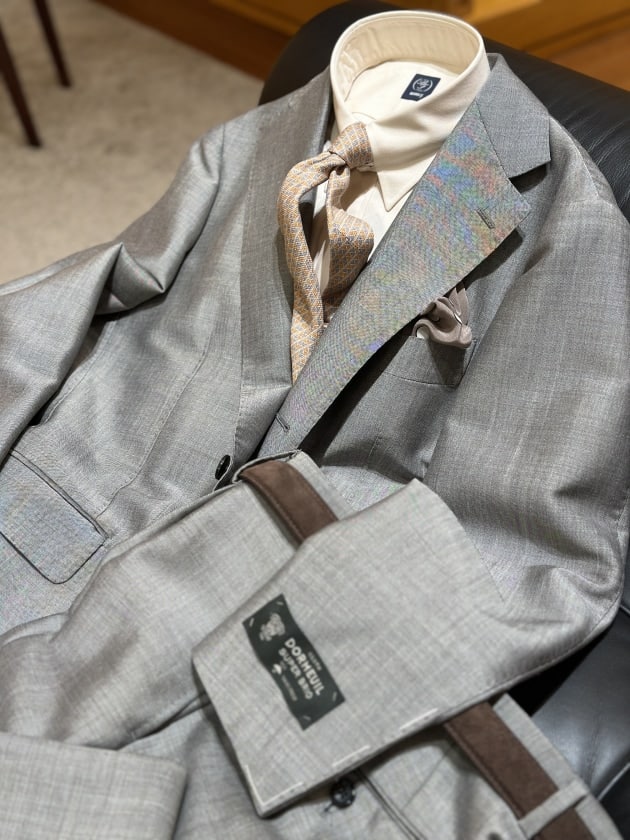 以前、色違いをご紹介しましたスーパーブリオの色違い。パリッと艶のある生地とシルバーグレーという相乗効果なスーツ!