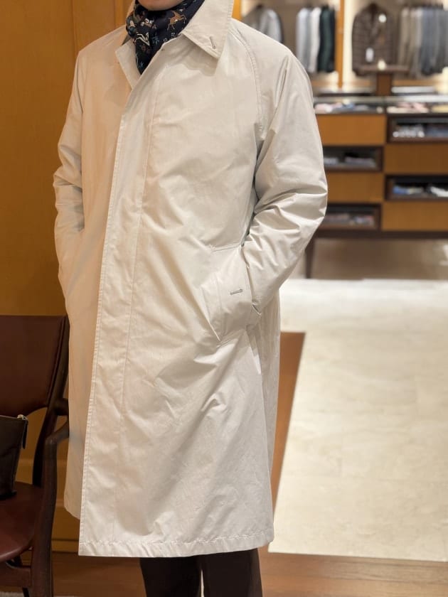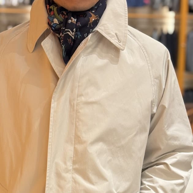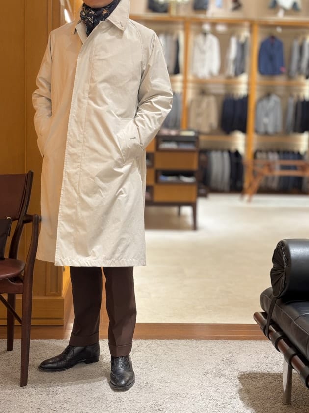 今シーズンも人気で早くも当店の在庫もなくなってしまったBEAMS Fのシングルラグランスリーブコートでご来店。