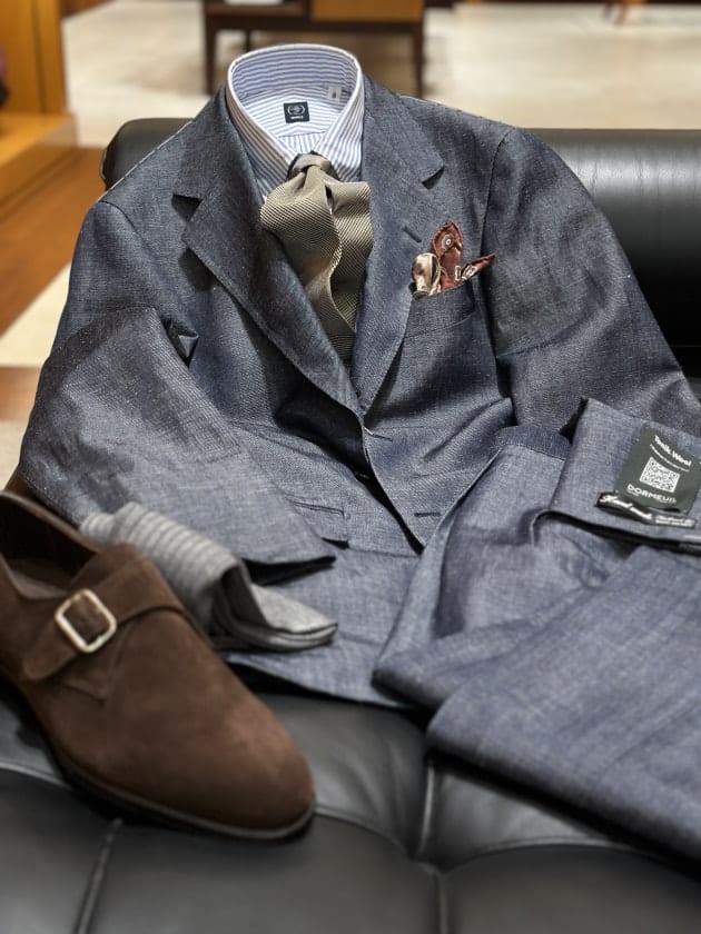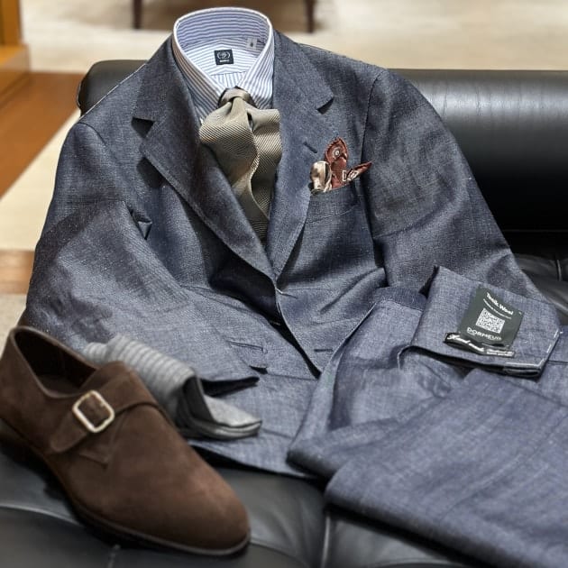 HANDMADE DORMEUIL ウールリネン インディゴカラー スーツ