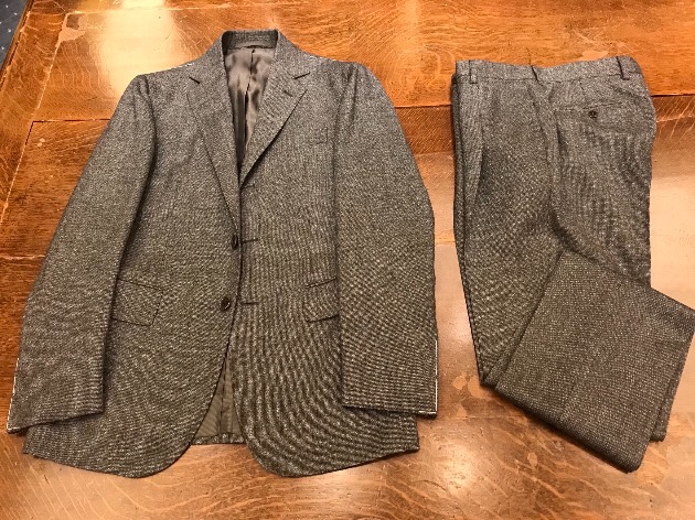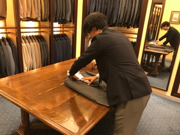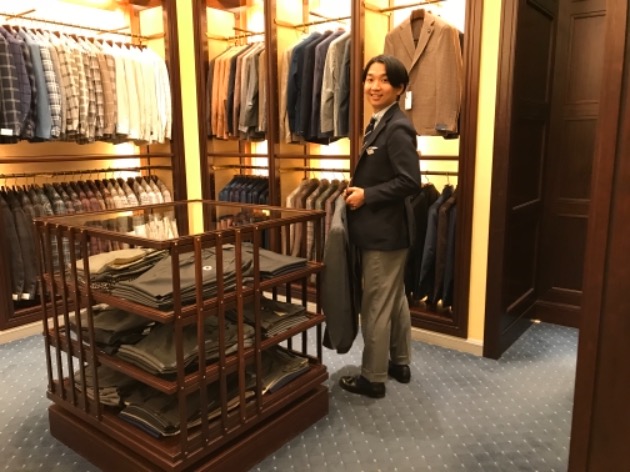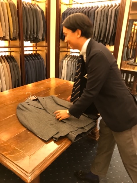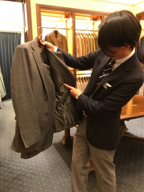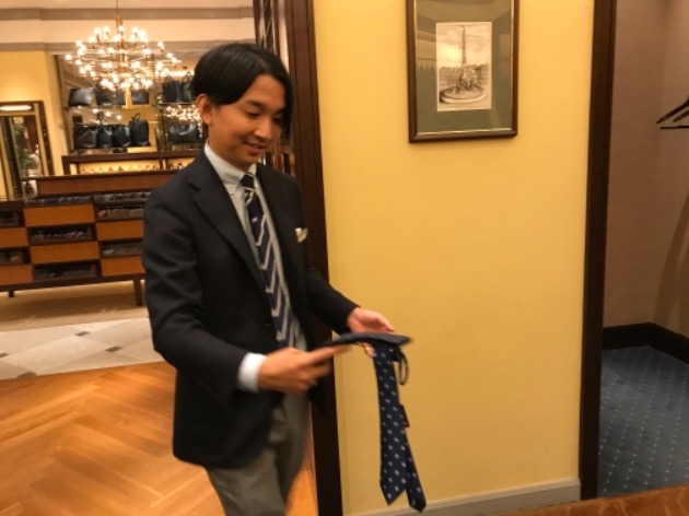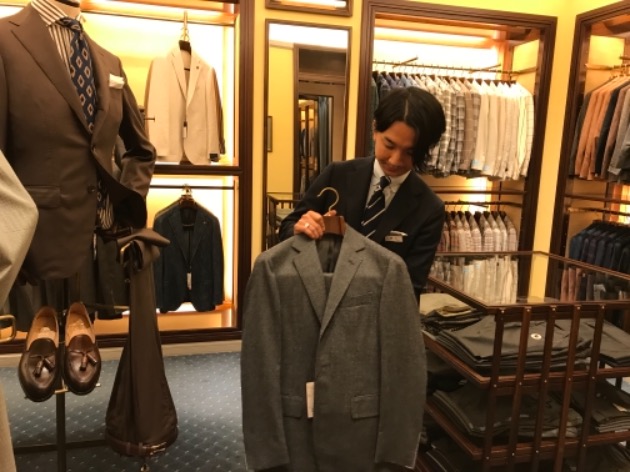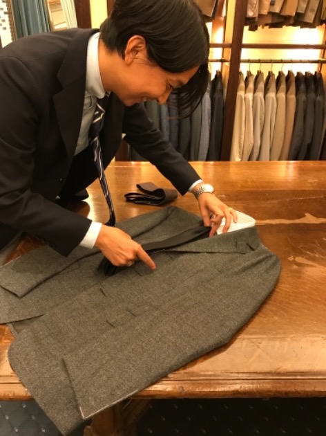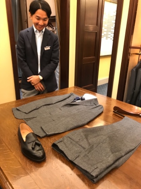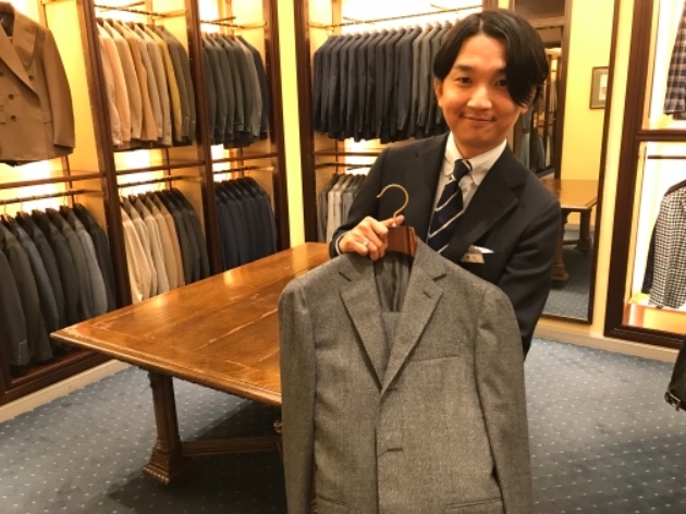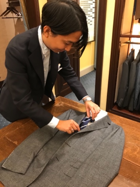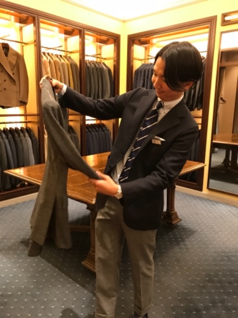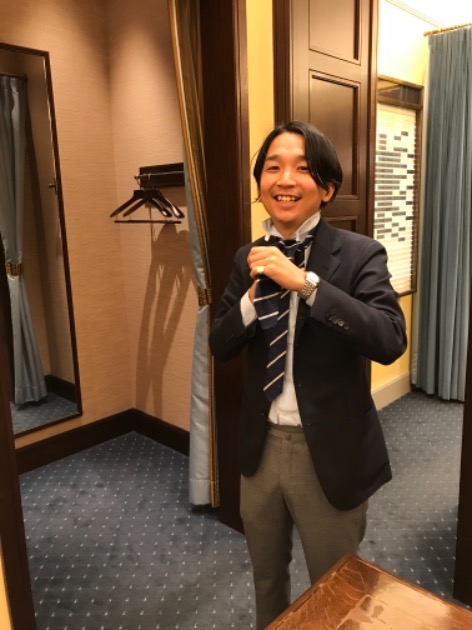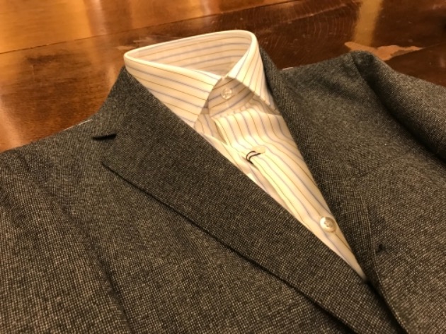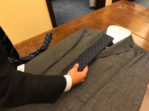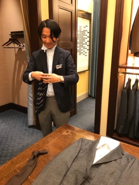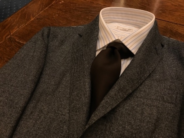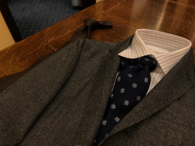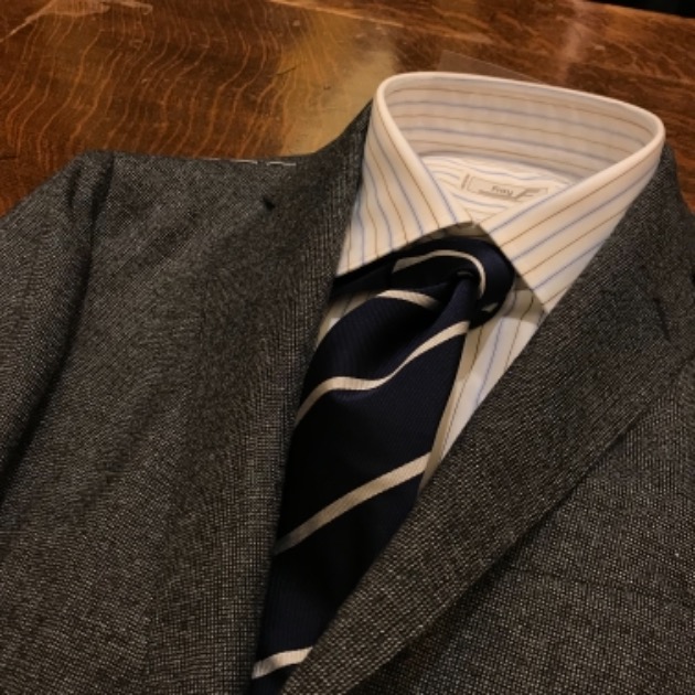 合わせているネクタイが50オンスのロイヤルツイルなので少し硬いなーと葉山
