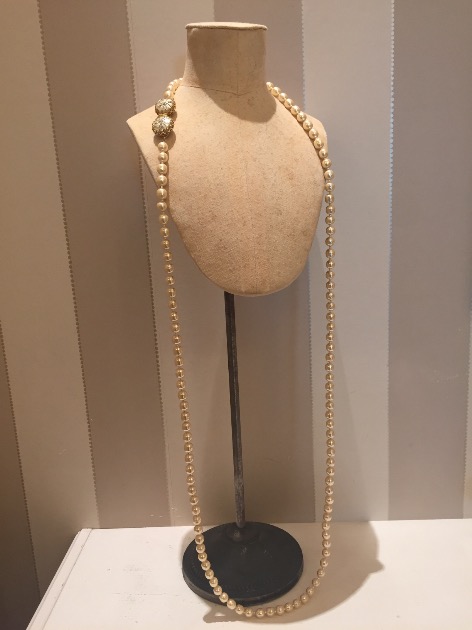 まずはボタンがポイントのロングネックレス。全長約122㎝です。