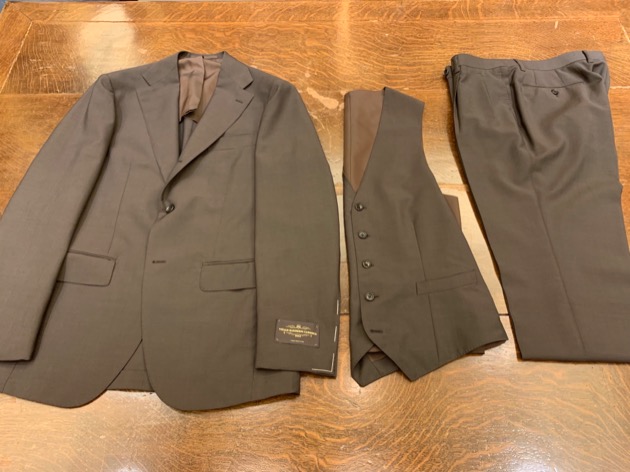 ブラウンソリッドのスリーピーススーツ