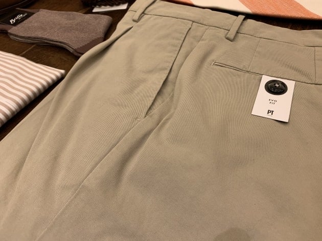 シャツ一枚だとどうしてもかっこよく見えないためせめてネクタイは締めるようにし、セッテピエゲのような芯地の入っていないネクタイを合わせるようにしています。
