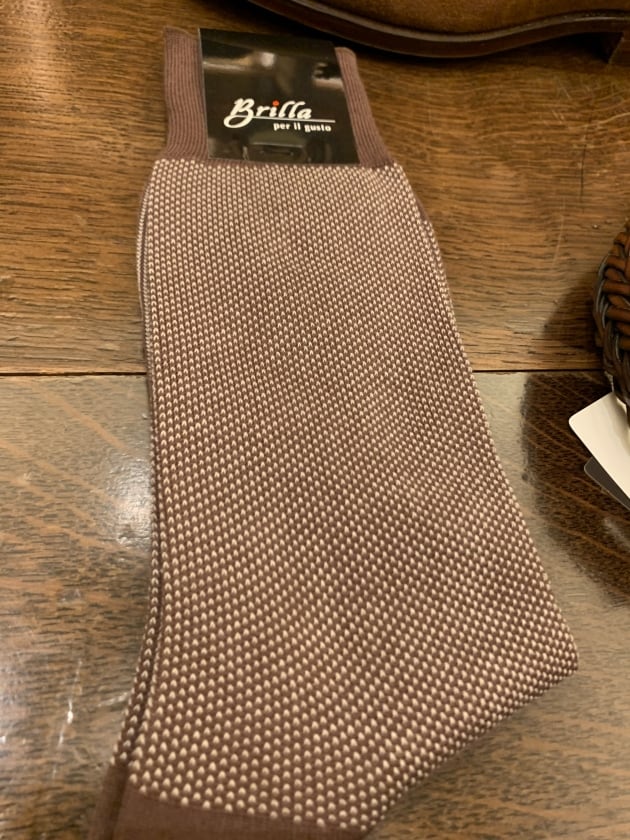 ライトブラウンとホワイトのメランジソックス。茶靴と合わせる時に非常に合わせやすいソックスです。ジャケパンの時にソックスで困ってらっしゃる方も多いかと思います。