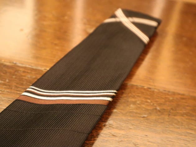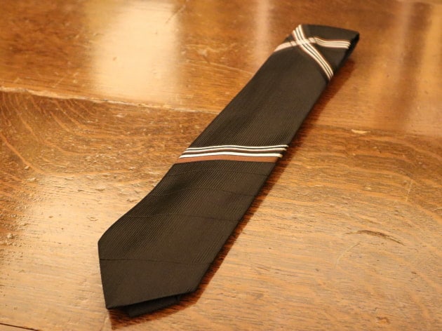 縦畝のツイル織のジャカードレジメンタルタイです。レジメンタルタイと呼ぶにふさわしいのか曖昧ですが独特な表情がコーディネートをシックにかつ、アクセントをもたせてくれそうな一本です。