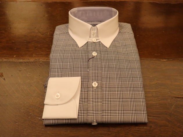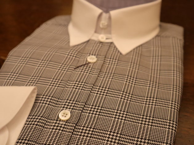 グレンチェックの生地を軸にクレリックタブカラーのシャツになります。