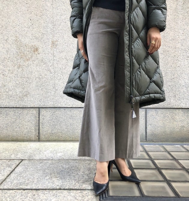細身と言ってもセミワイドほどなので、ワイドパンツやフレアスカートなどと合わせても可愛いです♡