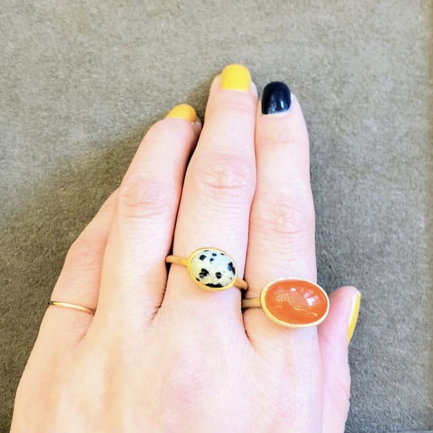 色鮮やかな天然石を使用したリングは、1粒でも存在感は抜群!
