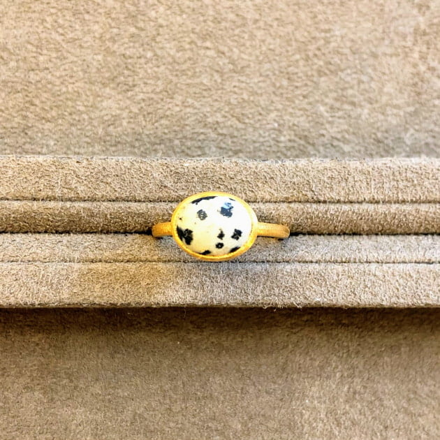 白黒の斑点が特徴的な「ダルメシアンジャスパー」は、戒めの石とも呼ばれ、自分の内面を見つめ直したい時などに、正しい思考力や判断力を高める手助けをしてくれるとされています。