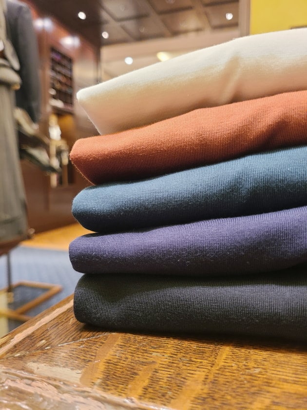発色を抑えた色味のクルーネックTシャツを5色ご用意。