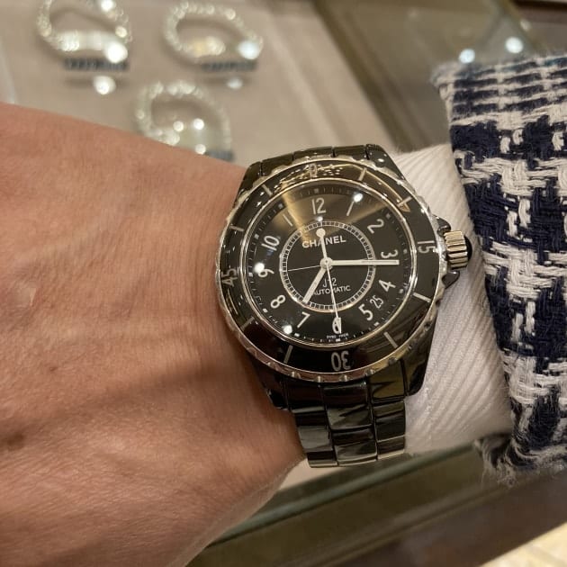 約10年前に大切な方からいただいた、セラミック素材のモデルJ12 H0685。現在このモデルは生産終了してますが、長年シャネルJ12の顔を張ってきたモデルです。発売以来変わらないデザインコードは、今なお斬新で、唯一無二ですね。