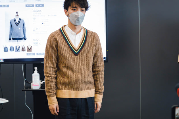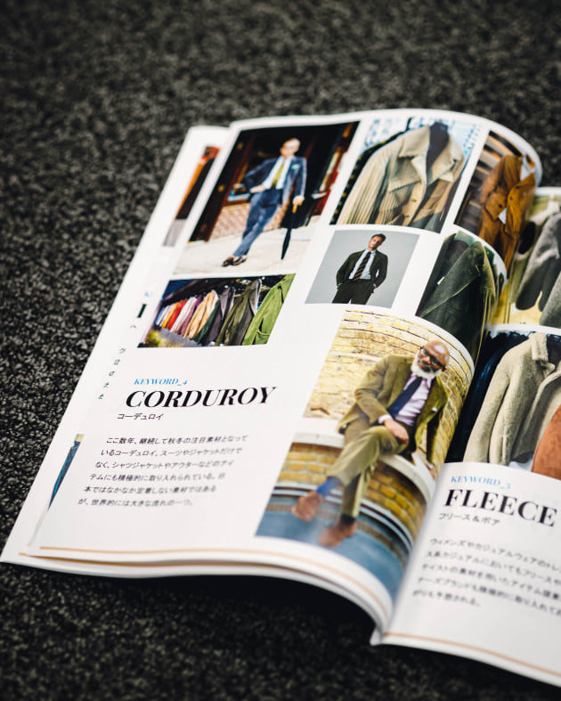 「数シーズン、いや5、6年継続して提案されているコーデュロイ。日本ではあまり定着していませんが、世界的に見ると大きな流れであることはまず間違いありません。先ほどのチェック柄との合わせにおいても非常に相性が良く、ヘリテージの核を担うと言っても過言ではないキーワードです。次のシーズンではジャケット、スーツ、シャツにアウター、と様々なアイテムで提案されています。」