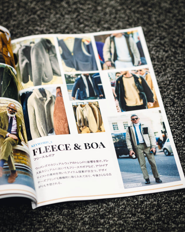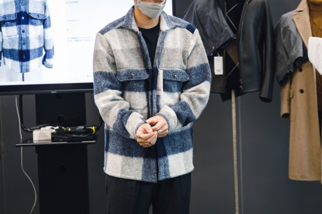 「ウィメンズやカジュアルではフリース、ボアなどのキーワードは大きく出てきていましたが、やっとドレスカジュアルのサプライヤーからも提案が多くなってきました。インナー使いというよりはある程度厚みのあるものをアウターとして着る使い方が中心です。」