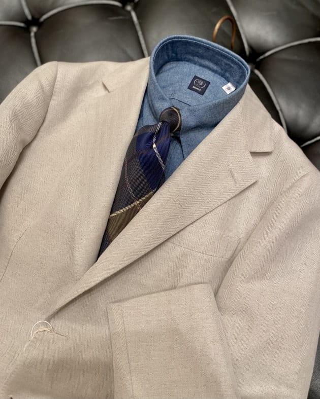個人的にベージュ系のスーツにも合わせたいですね。ブリティッシュアメリカンなイメージで。