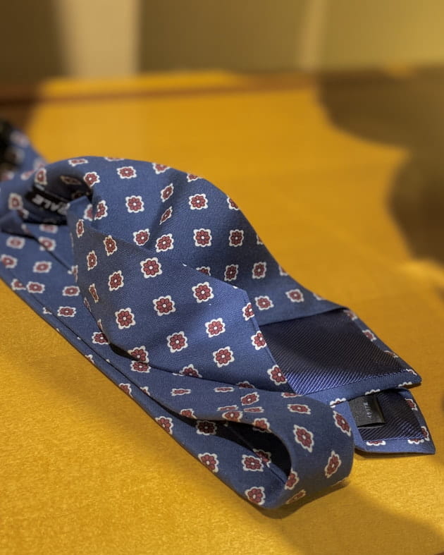 プリントタイの中でも、芯は比較的しっかりとした印象。軽すぎない質感が良いバランスです。