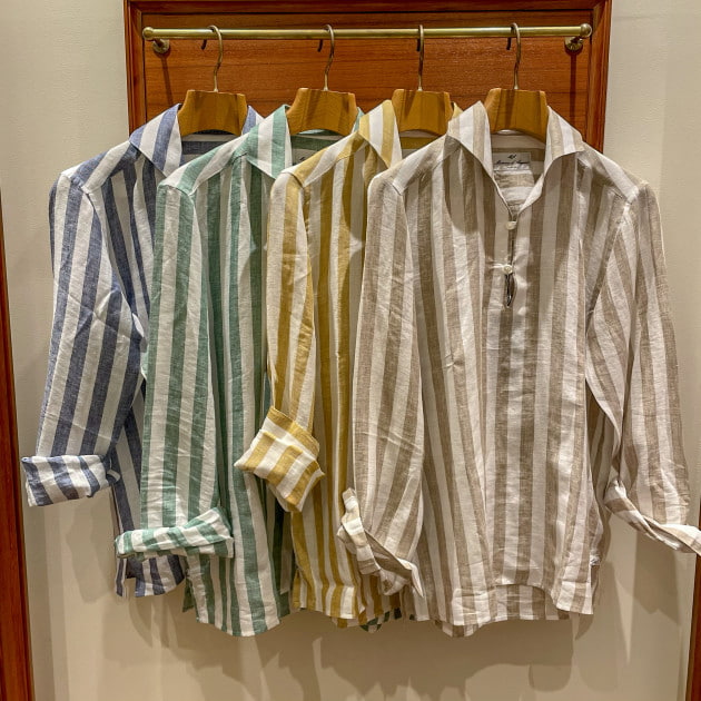 イタリアはリネン専門のシャツブランド、【Massimo d’Augusto】より、ボールドストライプ柄のカプリシャツです!